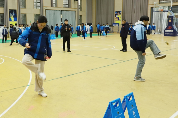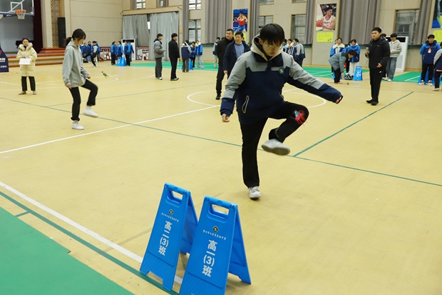 踢毽比赛则尽显灵动与技巧,比赛分为盘踢和单踢两个组别。在划定的比赛圈内,选手们专注凝神,双眼紧紧锁定翻飞的毽子,脚踝灵活转动,一系列动作行云流水。大家相互鼓劲、默契衔接,用一个个跳跃的身影,展现着西高中人的活力与风采。