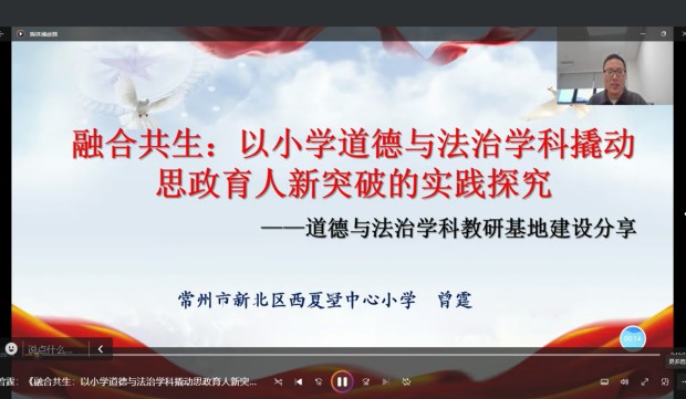 随后,孟河实验小学苗笛老师带来微讲座《行走的思政课:让爱家乡的种子在实践中生根结果》,分享了将思政课堂延伸至校外实践的探索经验,提出要通过沉浸式、体验式的实践活动,让爱家乡的情感在学生心中落地生根。西夏墅中心小学曾霆副校长则以《融合共生:以小学道德与法治学科撬动思政育人新突破的实践探究》为题,介绍了基地校在思政育人融合路径上的实践成果,为区域思政课一体化建设提供了可借鉴的经验。