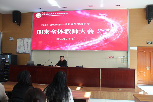 岁聿云暮,华章日新。近日,新北区奔牛实验小学召开2025年度学校总结大会,同步传达2026年春节期间师德师风建设工作要求,以复盘蓄力明方向,以清风正气守初心,为学校高质量发展与节日风气建设筑牢双重根基。