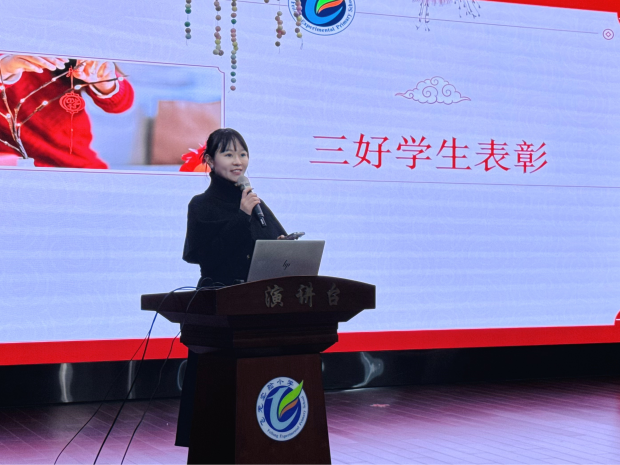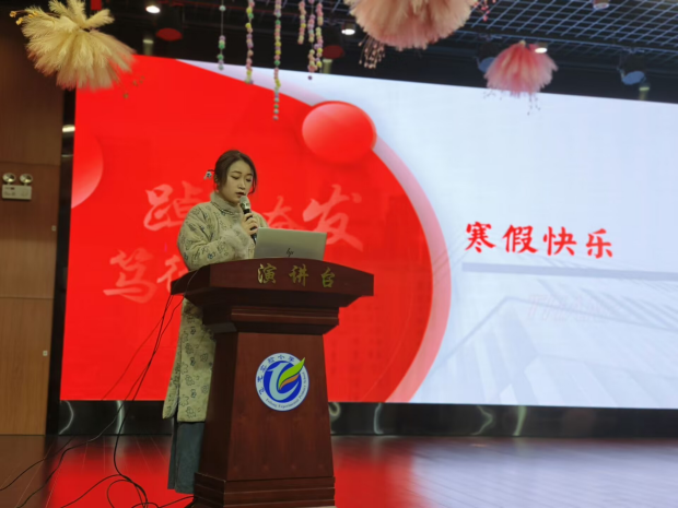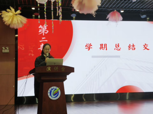随后,何晓燕副校长对本学期教育教学工作进行全面总结。本学期,学校秉持“立德树人”的根本宗旨,聚焦课堂教学改革,开展了丰富多彩的教研活动、学科竞赛、文体活动,为同学们搭建了展示自我的广阔平台。在全体师生的共同努力下,学校在教学质量、学生素养、校园文化建设等方面均取得了显著成效:多名教师在各级各类教学评比中获奖,同学们在书画、朗诵、科技等竞赛中捷报频传,校园氛围更加和谐向上。何校长鼓励同学们在寒假中继续保持良好的学习习惯,劳逸结合,为新学期的成长积蓄力量。