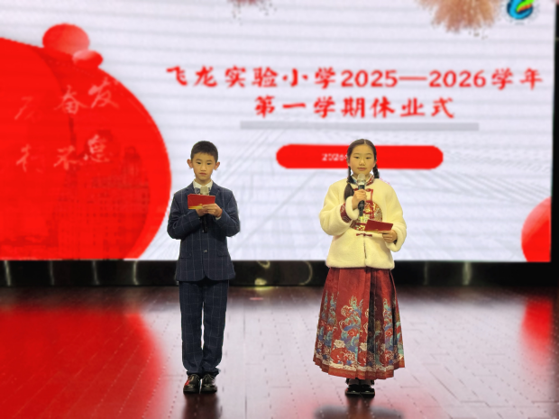 伴随着欢快的音乐,飞龙实验小学2025—2026学年度第一学期休业式圆满落幕。同学们带着本学期的收获与成长,怀揣着对寒假的期待与憧憬,将在平安、充实、有意义的假期中积蓄能量,以更饱满的精神状态迎接新学期的到来。