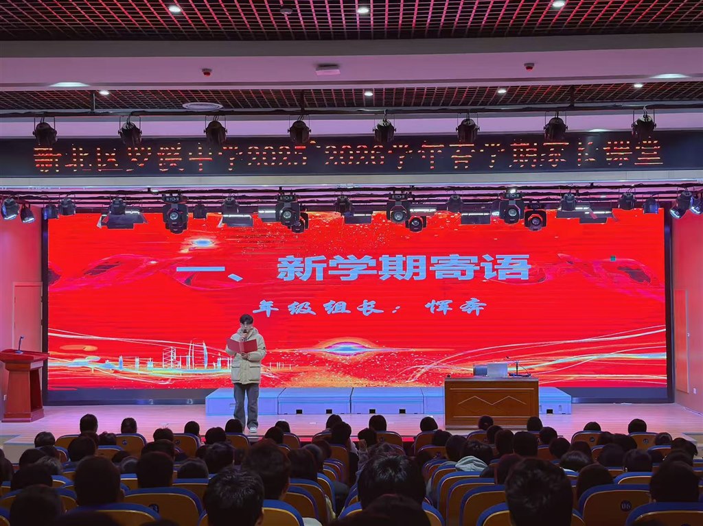 年级组长恽奔老师首先送上新学期寄语。他立足中考备考关键阶段,围绕目标定位、学习方法、心态调整等方面寄语全体同学坚定理想、脚踏实地,把日常积累化作冲刺底气,把青春奋斗融入中考征程,以专注与坚持奔赴理想、不负韶华,在追梦路上勇毅前行。