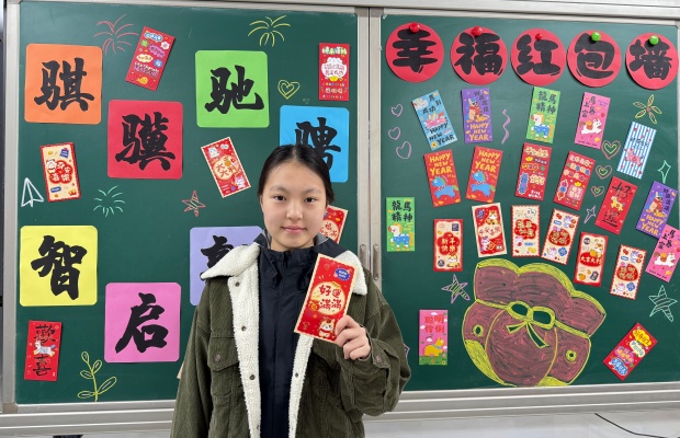 走进各班教室,浓浓的仪式感扑面而来,每一处细节都藏着老师们的巧思与用心。黑板上,红包拼出的“2026”字样喜庆亮眼,“幸福红包墙”贴满了承载美好期许的卡片,“骐骥驰骋”“智启新程”的彩字与 “新学期马力全开”的粉笔画交相辉映,搭配“我们开学啦” 的缤纷条幅,让每一间教室都成为充满童趣的迎新天地。