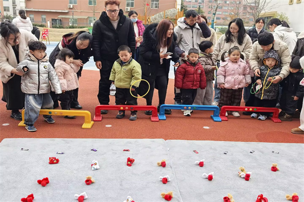 亲子迎新互动环节,成为本次活动最热闹的篇章,五大趣味区域让宝贝与家长在协作中收获快乐与成长。龙马闹宵区里,迷你舞龙具在宝贝手中挥舞,软糯元宵甜在心头,灯谜墙前的认真思索,猜中后的小礼品让成就感拉满;马住幸福区的套圈游戏,宝贝们在家长指导下瞄准马年毛绒吉祥物,每一次套中都是满满的幸福;走马观拓区,亲子携手拓印福字,红宣纸上的墨香福气,既可装点园区也能带回家珍藏;马步穿扬区的仿古投壶,宝贝们学着马步姿势投箭,智慧勋章是对小小探索者的最好嘉奖;花颂春晖区更是暖意浓浓,结合三八妇女节,宝贝们用粘土亲手制作美丽的小花,将小花盆里的心意送给妈妈,一句稚嫩的祝福,让母爱与感恩在春日里静静流淌。