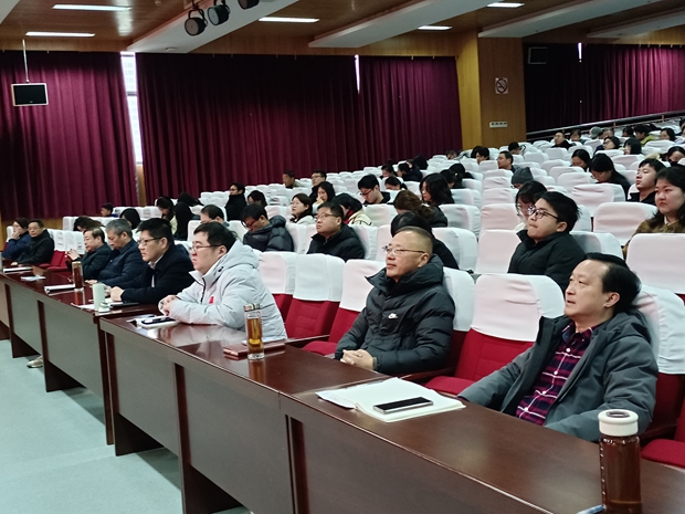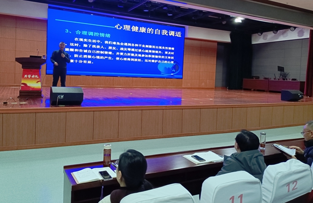 学校特邀第904医院常州医疗区主任医师、教授、硕士生导师孙剑,给全体教职员工带来了“培养阳光心理,书写精彩人生”为题的“开学第一讲”。孙剑教授从心理卫生的背景谈起,不仅讲解了心理问题的等级划分、怎样早期识别心理障碍,而且介绍了年轻教师常见的心理障碍、心理健康的自我调适、基层骨干心理疏导入门,还图文并茂地进行了趣味心理测试,分享了快乐的十八种技巧和心理小故事。他认为心理健康的自我调适包括:树立正确的人生观、期望值不宜过高、要合理调控情绪、善于人际交往、改变不良习惯、学会换位思考。他着重分享了获得快乐的技巧,如:有追求、保持微笑、与人共享、乐于助人、保持童心、愉快相处、善用幽默、处乱不惊、学会宽恕、善交知己。