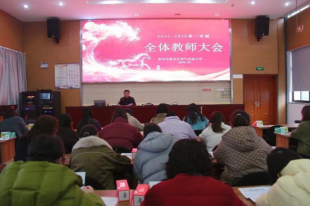 近日,常州市新北区奔牛实验小学召开2025-2026学年度第二学期开学工作会议,全体教师齐聚一堂,明确新学期工作方向与重点,为开学各项工作安全、有序、高效开展筑牢基础。