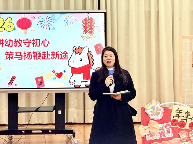 活动最后,园长发表致辞。她首先向全体教职工一学年以来的辛勤付出表示衷心感谢,向获奖的优秀教职工致以热烈祝贺。她深情回顾了2025年幼儿园在保教质量、课程建设、家园共育、安全管理等方面的显著成绩与亮点,对全体教职工的辛勤付出与无私奉献致以诚挚感谢。殷园长强调,每一份成绩都凝聚着团队的力量,每一次突破都彰显着教育的初心。希望全体教职工始终坚守 “深耕幼教” 的初心,以更加饱满的热情、更加务实的作风,在未来的工作中 “策马扬鞭”,不断探索创新,为幼儿提供更优质的教育服务,共同谱写百丈中心幼儿园发展的新篇章。