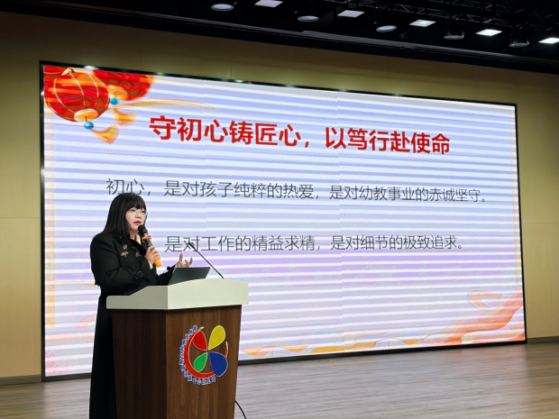 葛莉副园长以《策马扬鞭抓落实 匠心服务保平安》为题,围绕后勤队伍建设、校园安全、膳食营养、卫生保健等重点,阐述新学期规范化、精细化、暖心化保障举措,筑牢校园安全防线,为园所有序运行、幼儿健康成长提供坚实支撑。