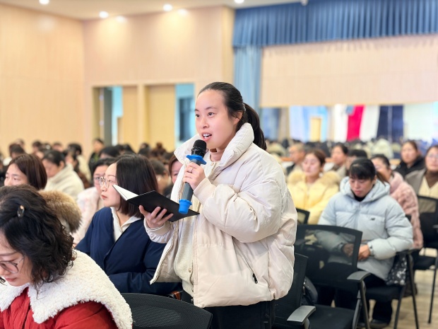 周微冬副园长以《以课程为脉,绘就儿童成长蓝图》为题,系统阐述新学期保教工作思路,明确生成课程落地、实效教研、家园社协同、托育提质等核心任务,为全园保教工作高质量开展指明方向、划定路径。