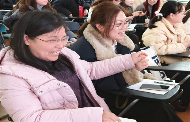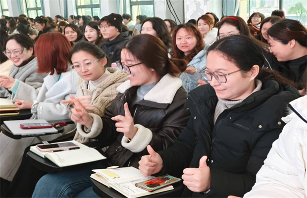 故事里,“长江之畔的春水滋养”“如春江晚景般温柔的教育”“如水般包容坚韧的力量”,不仅是春幼的教育底色,更在游戏中深深印刻在每位老师心中。游戏中,有人大声宣读 “教育如水、静润生命。” 的教育理念;有人随口说出 “马到成功、龙马精神” 的成语;有人唱响如水般的悦耳旋律,还有真诚的赞美与暖心的祝福,让整个游戏环节既有趣味性,又充满了教育温度。