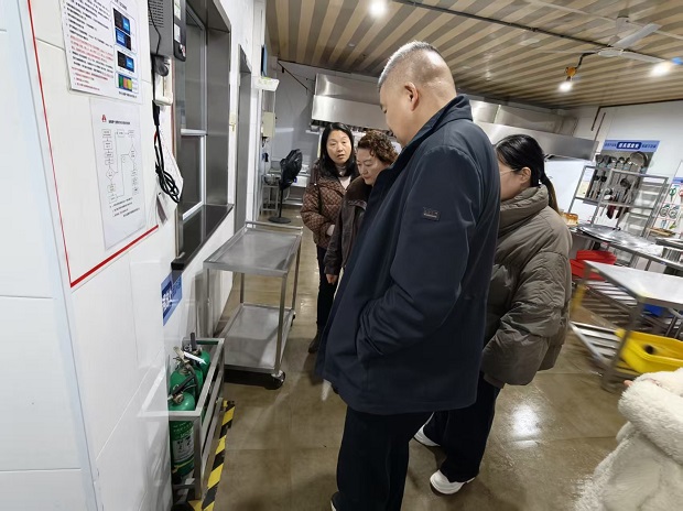 在安全管理方面,检查组深入门卫、食堂、消防通道、监控室等重点区域,详细查看门禁安保、消防设施、食品采购等落实情况,查阅安全隐患排查台账、应急预案、传染病防控等资料,强调要严守安全底线,做到隐患早发现、早处置、早闭环。