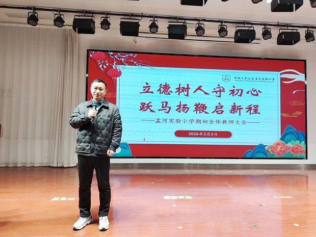 春风浩荡启新程,万马奔腾开新局,伴随着浓浓的年味和新春的祝福,我们迎来了生机勃勃的丙午马年。为助力学校稳定开局,从容出发,2026年3月2日上午,孟河实验小学全体教师在五楼报告厅召开期初教师大会,会议由孙建顺副校长主持。