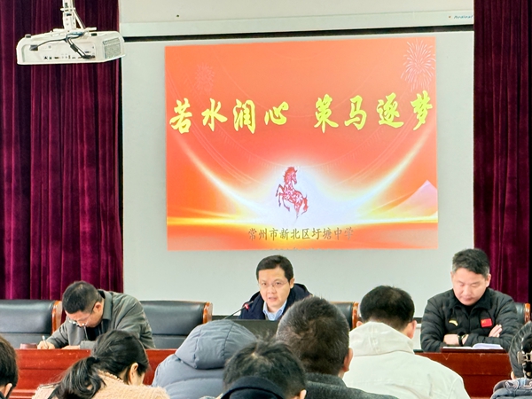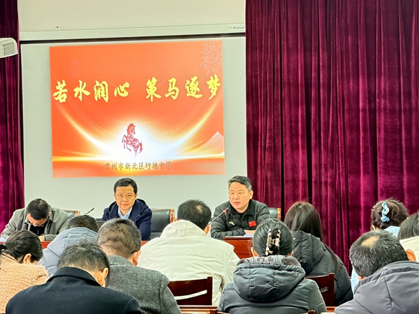 春回大地启新程,凝心聚力向未来。为确保新学期各项教育教学工作平稳有序开展,明确工作方向,凝聚育人合力,3月2日,新北区圩塘中学召开2026年春学期开学教工会议,全体教职工齐聚一堂,以“若水润心 策马逐梦”为主题,共话教育初心,共绘发展蓝图。