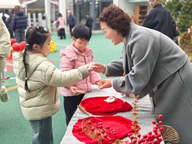 清晨的贝贝广场暖意融融、喜气洋洋,一场充满仪式感的迎新活动温馨启幕。孩子们依次踏上新学期的成长之旅:敲响迎新鼓,以“一鸣惊人”开启元气满满的新学期;与手持祝福手牌的老师们快乐击掌,拥抱新学期的美好期许;跨越印有“马到成功”“龙马精神”等吉祥话语的成长跨栏,在迈步向前中积蓄成长力量;从园长妈妈手中接过甜蜜福礼,将“身体旺旺、生活旺旺、学习旺旺”的美好祝愿珍藏心间。孩子们在欢声笑语中感受浓浓年味与成长喜悦,以最灿烂的姿态,快乐回归幼儿园。