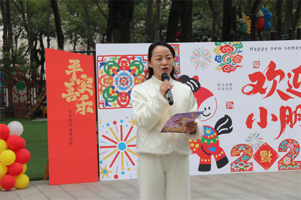 最动人的是园长妈妈的开学寄语:大班孩子如待飞的小雄鹰,愿你们在最后一学期勇敢冲刺,带着自信拥抱广阔天空。这个春天,让我们像熊大一样有担当,像年年一样勇敢,像光头强一样温暖——守护同伴、陪伴成长,做生活里闪闪发光的小英雄!话语间,春风轻轻拂过每一张笑脸。