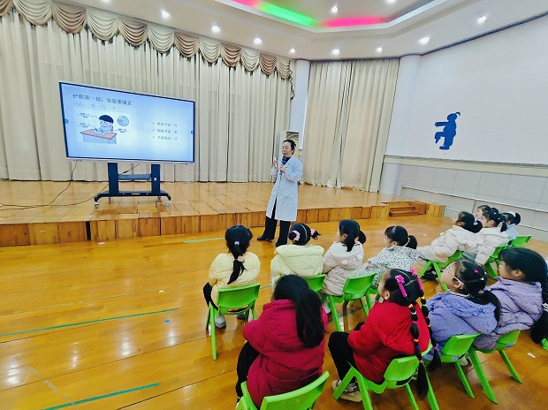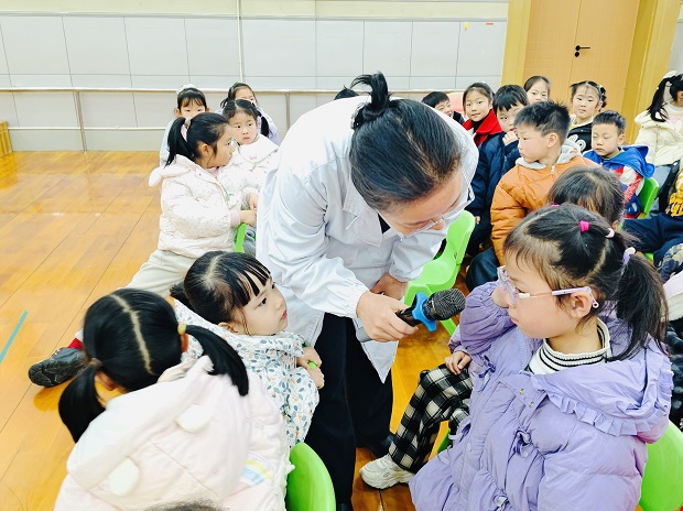 为有效预防幼儿近视低龄化,帮助孩子们树立科学护眼意识,2026年3月5日下午,春江人民医院周彬医生走进常州市新北区百丈中心幼儿园,为孩子们带来了一场生动有趣的健康科普活动——《擦亮心灵之窗 “小眼镜”防控》。