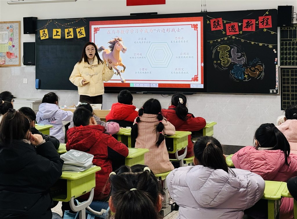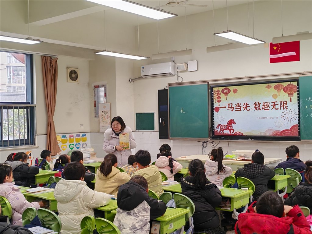 数学开学第一课紧扣马年主题,立足数学学科核心,设计趣味化、序列化学习活动。课堂围绕数学知识衔接、学科能力培养展开,结合骏马意象,通过《小马过河》《田忌赛马》等趣味故事、马年数趣闯关等数学特色形式,帮助学生回顾旧知、初识新学期数学核心内容,明确课堂常规与学习目标。活动兼顾趣味性与学科性,引导学生以骐骥之姿收心归位,激发数学学习兴趣、培养良好学习习惯,策马扬鞭开启新学期数学探索新征程。
