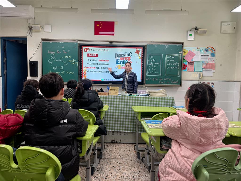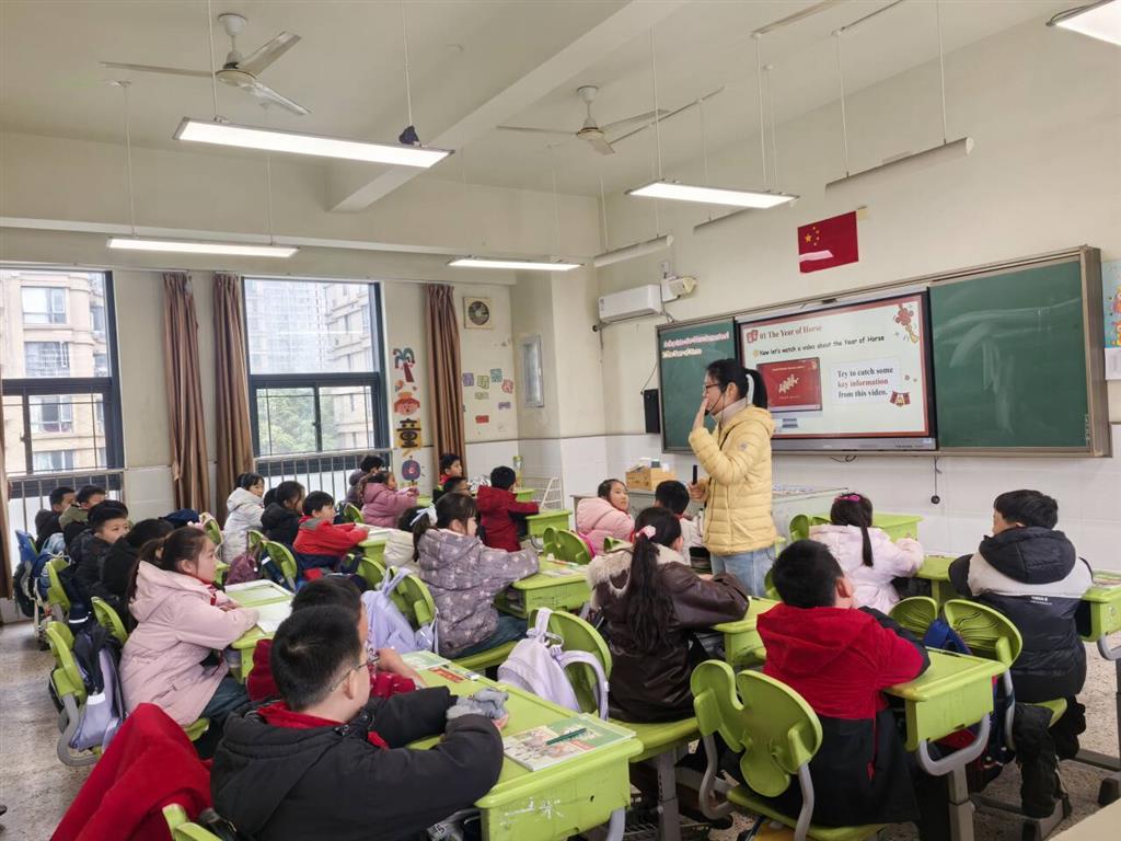 英语开学第一课聚焦马年主题,师生共同解读马年的美好寓意,欣赏马年春节的趣味视频,分享同学们马年假期中的快乐生活,巧妙将马年元素融入英语课堂,用英语畅谈假期缤纷活动。同学们畅享新学期,许下新年美好愿望。这堂充满趣味的开学第一课,不仅缓解了同学们的开学紧张情绪,更激发了大家对新学期英语学习的高涨热情。