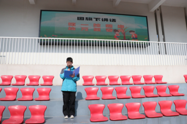 随后,七7班学生代表发表了题为《植一抹新绿,绘万里春光》的国旗下讲话。讲话从春天的生机切入,深刻阐释了绿色的意义。他号召全体同学不仅要积极参与植树造林,用实际行动装点家园,更要在心中播下环保的种子,节约一张纸、珍惜一滴水、选择绿色出行,从身边小事做起,践行绿色理念。