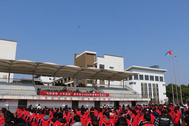 春启新程,岁纳华章。3月9日上午,奔牛实验小学全体师生齐聚操场,隆重举行以“马跃新程 少年启航”为主题的2026年春季开学典礼,在春日的暖阳中共同开启新学期的崭新征程,奏响少年奋进的昂扬乐章。