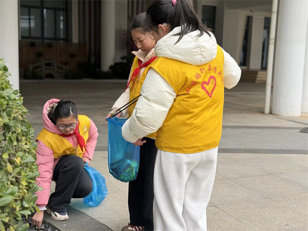 六年级的同学们身着统一的志愿马甲,化身“小雷锋”,走进校园、社区,用双手美化环境。大家认真清扫校园角落的垃圾,细心修剪绿化带中的杂草,不放过任何一处卫生死角,让校园面貌焕然一新。在社区,同学们主动陪伴孤寡老人,为他们捶背聊天、整理房间,用温暖的话语和贴心的举动,让老人们感受到浓浓的关爱。