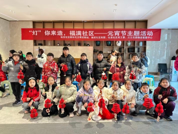 3月2日下午两点,三江花园南门物业内热闹非凡,在龙虎塘街道仙龙社区和三江花园物业组织下,龙虎塘第二实验小学三年级的小朋友们围坐一起,跟着社区书记学习传统花灯制作,点亮了一个充满童趣的元宵佳节。