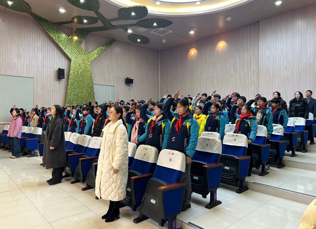 国旗猎猎,初心灼灼。雄壮的《义勇军进行曲》响彻校园上空,鲜艳的五星红旗冉冉升起,全体师生肃立注目,行注目礼、敬队礼。少先队员们嘹亮的歌声里,藏着对祖国最深沉的热爱;挺拔的身姿中,彰显着新时代少年最坚定的担当。一抹中国红,映亮了少年眼眸,也点燃了心中炽热的家国情怀。