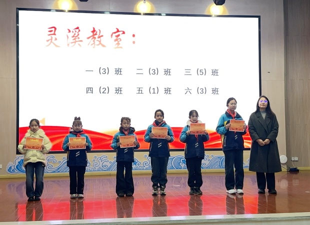 榜样引领,笃行致远。仪式的颁奖与常规反馈环节,满含着期许与激励。谢校长为获评 “灵溪教室” 的优秀班级隆重颁发荣誉,肯定了各班在日常常规管理中的用心与成效,为全体师生树立了榜样标杆;裴翠夏老师对近期校园常规工作进行细致总结与暖心教育,叮嘱同学们严守校规校纪,规范言行举止,在细节中养成好习惯,在坚持中成就好品格。这份肯定,是对过往努力的嘉奖;这份提醒,是对未来成长的期许,激励着罗小全体师生凝心聚力,携手共进,再创佳绩。