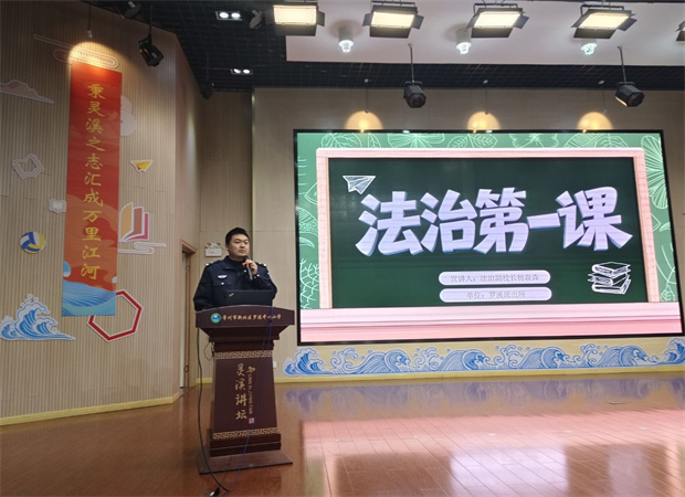 为筑牢校园安全防线,厚植学生法治观念,学校特邀法治副校长杨焱森为同学们带来 “法治第一讲”。杨校长以校园安全、禁毒宣传、反诈防骗为核心,结合真实案例,用通俗易懂的语言,深入浅出地讲解法律知识与自我保护技巧。同学们凝神聆听,积极互动,在心中种下知法、懂法、守法的种子,立志做明辨是非、坚守底线的新时代好少年,让法治之光,护航成长之路。