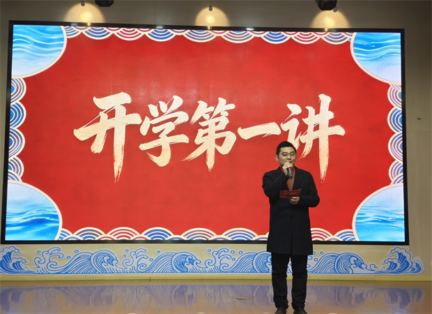 热烈的掌声中,刘四青校长登上讲台,带来以《从 “心” 启航,向 “溪” 而行》为题的开学第一讲,以水为喻,寄情寄思,为全体学子送上新学期的深情寄语。