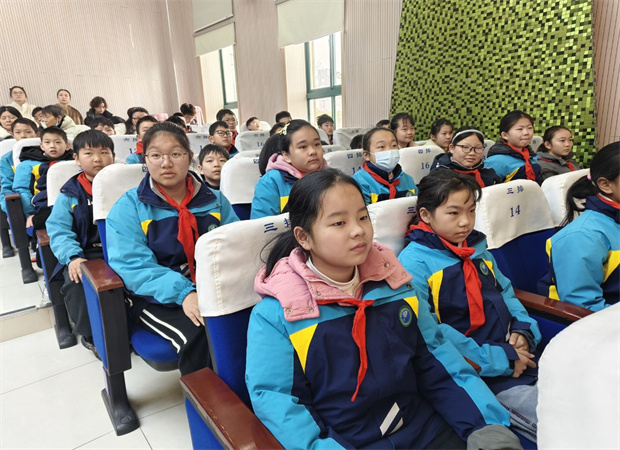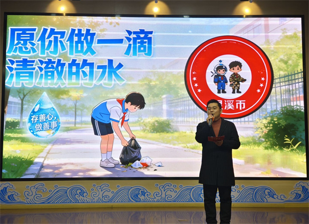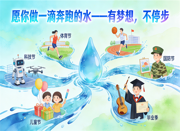 愿少年做一滴勇敢的水,敢闯敢试,不惧跌倒。他援引《飞驰人生 3》中张驰 “盲开” 闯弯道的热血情节,勉励孩子们在课堂探索、运动场竞技、科技节创想中,勇敢迈出第一步,纵使前路有坎坷,亦能直面挑战、重新站起;愿少年做一滴清澈的水,心存善意,行有温度。他讲述 “灵溪银行” 里,同学们诚实守信、互帮互助的暖心故事,告诉孩子们,善良与责任是人生最珍贵的财富,愿大家以点滴善举,让温暖在校园传递;愿少年做一滴奔跑的水,心怀梦想,步履不停。他细数三月科技节、四月体育节、五月国防节与艺术节的美好期许,寄语孩子们如溪水般奔流向前,穿越荆棘,踏浪而行,奔赴属于自己的星辰大海。情真意切的话语,浸润童心,催人奋进,台下掌声雷动,久久不息。