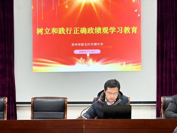 为深入贯彻上级关于树立和践行正确政绩观的部署要求,凝聚为民造福、实干兴教的思想共识与行动合力,常州市新北区圩塘中学分阶段、分层次开展树立和践行正确政绩观学习教育系列活动,通过党员大会启动部署、全体教工会议深化推进,推动学习教育走深走实、见行见效。