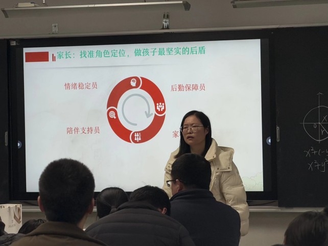本次家长会分两个环节有序开展,切实做到政策传达到位、学情沟通深入、家校共识凝聚。第一环节,由副校长郭云洁进行中考政策解读,针对2026年中考报名流程、志愿填报等家长高度关注的核心政策进行细致、全面的解读,明确各项时间节点、操作要求和注意事项。切实为家长解疑释惑,让家长清晰掌握中考相关政策要求。