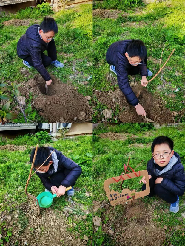 除了现场亲子植树,同学们积极响应“居家植绿” 倡议,化身 “小小园艺家”,在阳台、庭院或老家田地等安全区域,开启了专属植绿之旅,让成长的绿意延伸到每个家庭。