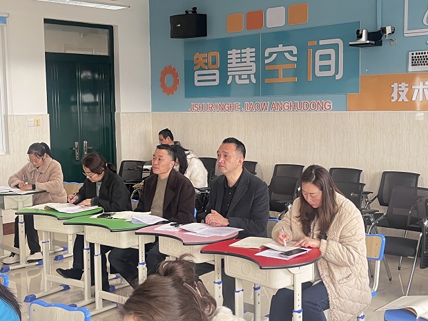 课堂观摩结束后,进入了深度的研讨交流环节。丁志根校长结合展示课例,进行了高屋建瓴的点评与指导。丁校充分肯定了授课教师扎实的教学基本功和课堂上对学生思维能力的有效训练。同时,他也从“大单元教学设计”、“练习的层次性与开放性”以及“如何让学生在课堂上真正发生深度学习”等角度,提出了宝贵的优化建议。