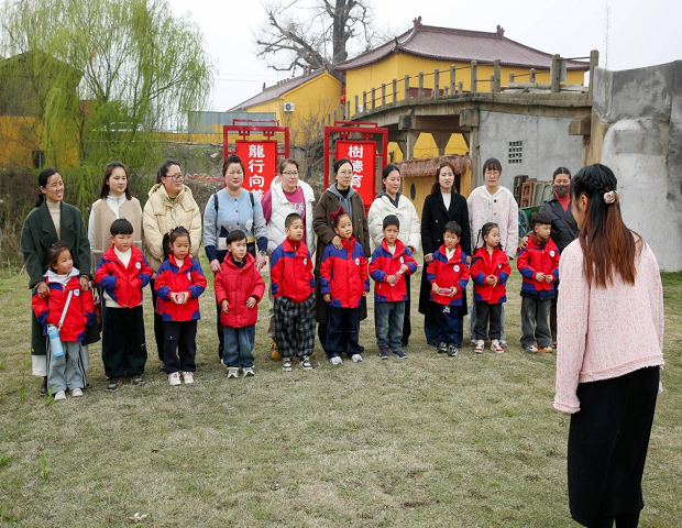 活动伊始,老师和家长们带着孩子们在幼儿园集合出发,前往龙树慈善小院与白龙湖。在千年银杏树下,老师向孩子们介绍了世界水日的意义同时讲述了古树与自然共生的故事,让孩子们感受自然生命的厚重。
