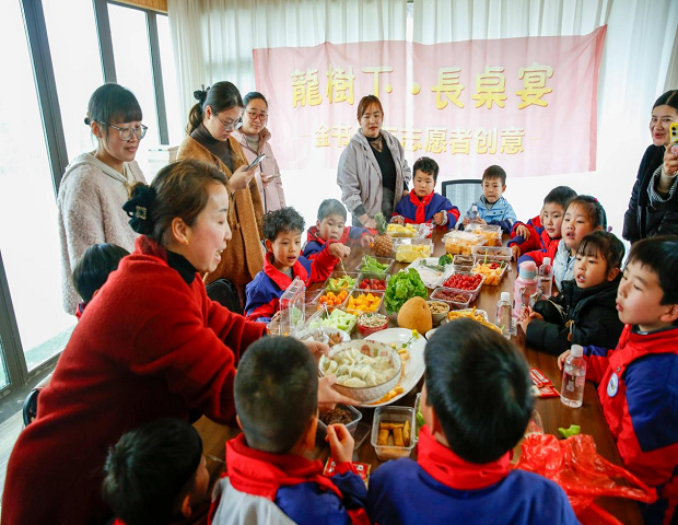 劳动过后,温馨的亲子长桌宴拉开序幕。家长们带来了精心准备的美食,孩子们则和爸爸妈妈一起动手包馄饨、煮馄饨,围坐在长桌旁分享劳动成果,在欢声笑语中学会分享与协作,感受家园共育的温暖。