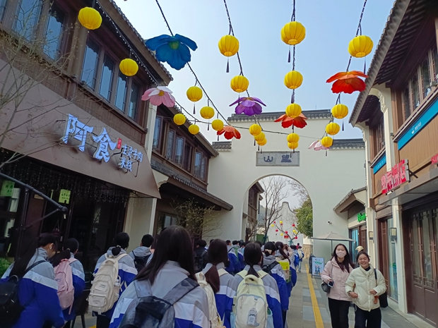 3月20日上午,七、八年级师生来到无锡锡惠胜境,感受阳春三月的江南风光,感受浓郁的吴越文化。在中国泥人博物馆,同学们在成千上百件展品间流连,了解了惠山泥人、紫砂陶、精微绣、留青竹刻等无锡非遗技艺。在锡惠古镇,同学们在烟火气十足的店铺间漫步,品美食、选文创;在古色古香的各个宗祠、园林里驻足,感受一眼百余年的沧桑。在锡惠公园,同学们在项目众多的游乐园里畅玩,享受轻松惬意的美好时光。