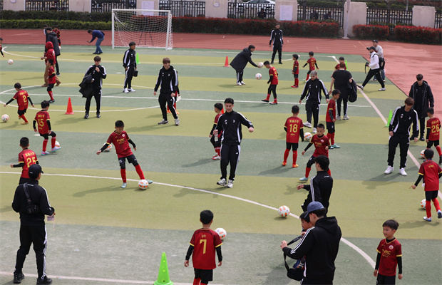 破冰之后,精彩的趣味足球活动将现场氛围推向高潮,定点打准和点球大战两大项目,让孩子们在竞技中体验足球的乐趣,在挑战中提升运动能力。最令人期待的足球赛环节如约而至,中外球员打破国籍界限,以“2-3 名外籍球员+4-5 名小学生” 的方式混合组队,开启了一场以团队协作为核心的绿茵对决。多局轮换的方式让更多孩子拥有上场机会,活动的重点也落在了团队配合与无声沟通上。