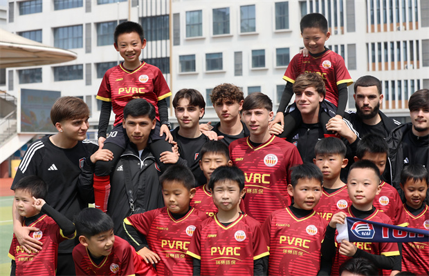 结对完成后,趣味十足的互动任务随即展开。合作颠球挑战中,中外小伙伴并肩协作,目光紧盯足球,配合着脚下的节奏,向着 “连续 5 个不落地” 的目标努力,一次次挑战更多次数,赛场边的加油声此起彼伏;外籍球员化身暖心教练,耐心地教小学生们花式颠球、灵活运球、巧妙过人等足球绝活,小球员们认真模仿、积极尝试,在手把手的教学中,不仅收获了足球技能,更让跨国友谊在指尖与脚尖的互动中悄然升温。短短20分钟,语言的隔阂被笑容打破,陌生的距离被足球拉近,绿茵场上满是欢声笑语。
