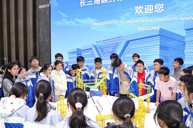 在新北测绘科普教育基地,同学们通过实物展示与互动体验,深入了解测绘技术的发展历程与现代应用,感受到精准测量背后的科技力量。随后,大家来到江苏集萃碳纤维及复合材料科普教育基地,近距离观察碳纤维材料的制造过程,聆听专家讲解其在航空航天、新能源等领域的关键作用,惊叹于“黑黄金”背后的创新智慧。