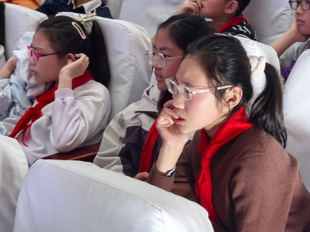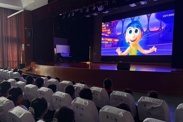 在观影过程中,六年级同学们展现了良好的纪律素养,文明观影。大家全神贯注,情绪随着莱莉的遭遇而起伏:看到熟悉的乐乐、忧忧时,会露出会心的微笑;看到“焦焦”掌控大脑导致莱莉做出失控举动时,不少同学感同身受,神情紧张;而当莱莉最终找回自我、与所有情绪和解的那一刻,许多同学的眼眶也悄然湿润。影片中的青春期困惑引发了在场孩子们的强烈共鸣。