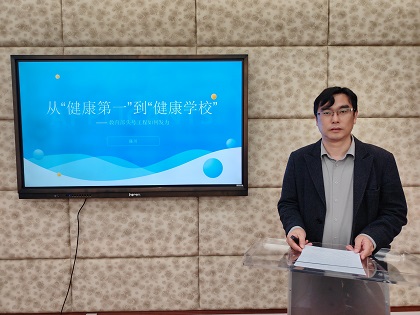 在专题学习分享中,石桥校区陈川主任以“从‘健康第一'到‘健康学校'”为主题进行分享。陈主任围绕健康校园建设的核心要义、实践路径、实施重点等内容展开深入讲解,结合学校实际,阐述了将“健康第一”理念融入校园教育教学、日常管理、后勤服务等各环节的重要意义,分享了打造全方位、多层次健康学校的思路与举措。