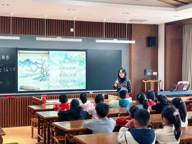 课堂上,王丽老师的《春韵悠悠入诗乐——画》完美践行了跨学科融合与美育育人的理念,为低段音乐教学树立了优秀典范。整堂课紧扣低年级学生认知特点,以 “诗中有画、画中有乐” 为教学主线,将水墨山水画、古诗《画》与音乐教学深度融合,构建了诗意盎然的跨学科学习情境。课堂伊始,水墨山水画创设的古典意境,自然衔接古诗学习,让学生在视觉审美中感知传统文化韵味,实现了美术、语文与音乐学科的有机交融,正是跨学科主题学习 “源于文化议题、整合多学科内容” 的生动实践。
