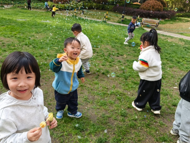 各班还结合幼儿兴趣,开展了形式多样的班本化活动。小1班的孩子们用画笔描绘“春天的树”,小2班和小4班的小朋友在音乐中尽情律动,小3班探索了“小区里的运动器械”,小5班开展了“大自然探秘”收集活动,小6班和托班的孩子们则在“吹泡泡”“追泡泡”的游戏中感受春天的灵动与快乐。每一张笑脸,每一个瞬间,都成为春日里最美的风景。