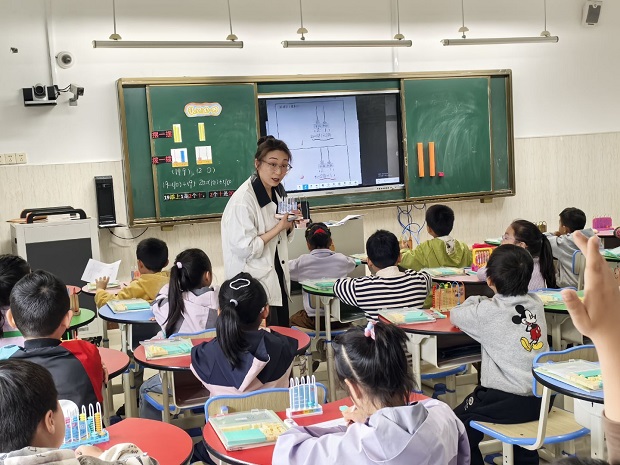 钱洁老师执教一年级《认识20—99》,课堂紧紧贴合低年级学生的认知规律,用生动有趣的生活情境引入新知,配合小方块、计数器等直观学具,让抽象的数字变得可看、可摸、可操作。课堂上,学生在数一数、摆一摆、说一说的过程中主动参与、积极思考,逐步明晰数位含义,掌握数的组成与顺序。整堂课节奏明快、互动充分,在轻松愉悦的氛围中夯实数学基础,培养初步的数感,展现了扎实细腻的低年级数学教学风采。