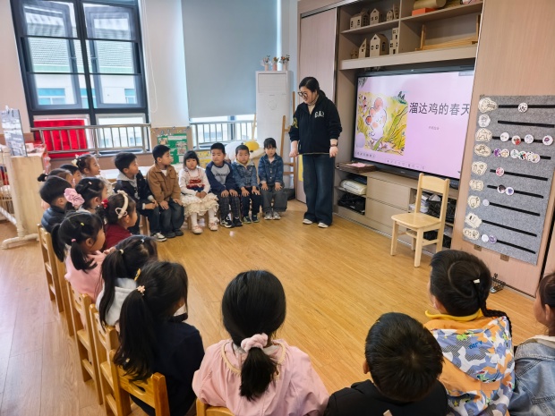 本次活动以现场观摩 + 引领提升为核心形式,环节紧凑、内容扎实。上午 8:30,活动正式拉开帷幕,先是安家中心幼儿园中 3 班区域游戏展示,丰富多元的游戏材料、自主有趣的游戏氛围,充分展现了幼儿在游戏中主动探索、快乐学习的状态。随后,沈艳老师在中 2 班开展集体活动展示,从绘本《溜达鸡》出发,跟随溜达鸡的脚步探寻春天,教学环节设计巧妙、互动氛围热烈,有效激发了幼儿的参与热情与思维活力。