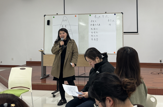 情景雕塑环节中,家长们分别扮演成绩差的孩子、爸爸、妈妈、老师及两位同学。现场呈现出“不理”“指责”的互动模式。扮演孩子的家长坦言感受到“发抖、害怕、出汗”。随后,大家尝试换一种方式,用拥抱、温暖、理解来对待孩子,氛围瞬间变得温馨而和谐。这让家长们深刻领悟到:教育的起点不是成绩,而是关系。只有建立起良好的亲子关系,让孩子感受到爱与尊重,他们才能在温暖的环境中茁壮成长。