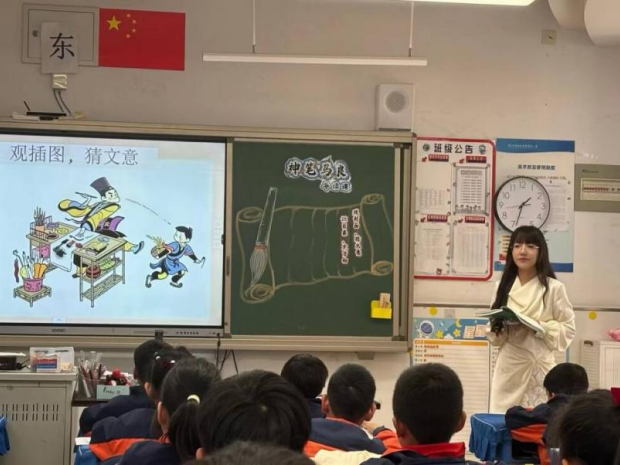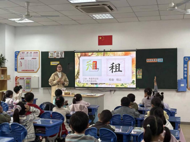 飞龙实验小学一年级顾云老师执教的《我有友情要出租》绘本导读课,紧扣情感主线搭建阶梯式学习板块,遵循学生认知规律,将抽象阅读方法转化为可感知、可实践的具体路径。课堂以“找朋友”“石头剪刀布”等互动游戏激活全员参与,打造沉浸式童趣课堂,深度融合口语表达与情感共情训练。顾老师始终以引导者身份,紧扣语文要素落实生字教学,打通课内学法与课外拓展的整本书阅读闭环,实现阅读能力、语言发展与德育的三位一体,成效显著。培育室老师建议后续教学可更加聚焦重难点,优化时间分配,深挖图文内涵,给予学生更充分的自主探究空间。