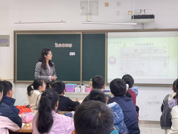 飞龙实验小学四年级汪欣茹老师执教《灰尘的旅行》整本书阅读导读。课堂以情境互动、目录探究、片段精读等形式,带领学生认识书籍结构,学习科普文阅读策略,通过《呼吸道的探险》共读与科普视频直观演示,将科学知识与生活健康相融合,引导学生制定阅读计划。课堂整体生动有趣,有效激发学生科普阅读兴趣,培养科学阅读习惯。
